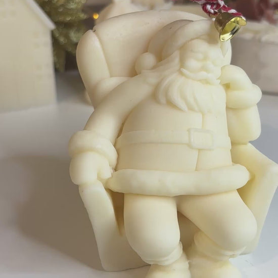 Lasciati incantare dal dettaglio squisito di questa candela scultura che cattura il cuore dello spirito natalizio! Realizzata con cura artigianale, raffigura un tranquillo Babbo Natale seduto comodamente sulla sua poltrona, in attesa del momento di distribuire i regali. Γ l'elemento perfetto per trasformare la tua casa in un accogliente rifugio festivo.